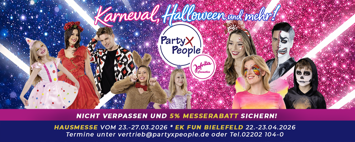 Wir bei Party x People wissen, was Ihre Kunden für die nächste Karnevalssession, fürs Faschingsfest, eine gruselige Halloweenparty, ein Mottofest oder den anstehenden Junggesell*innenabschied brauchen!