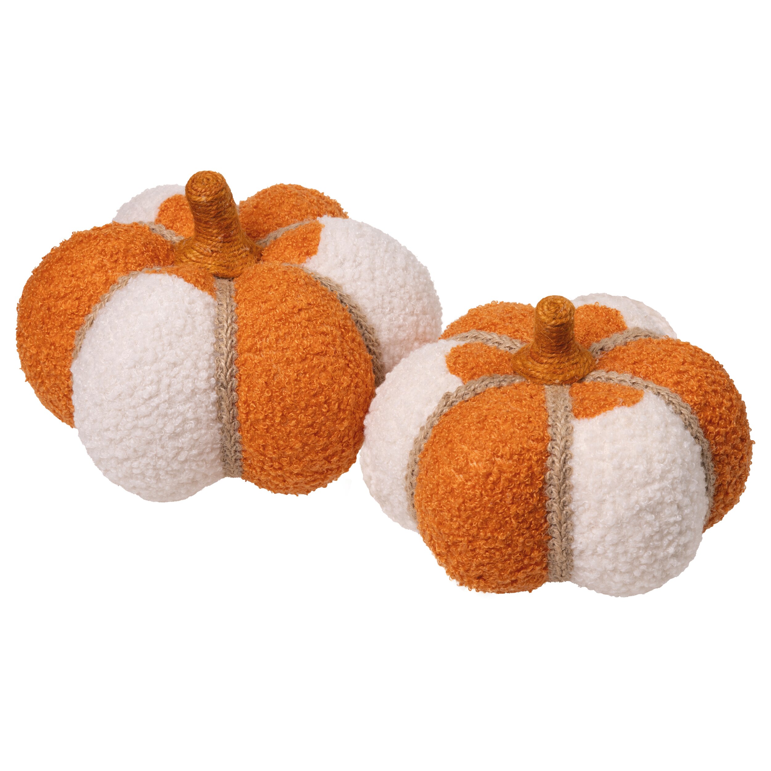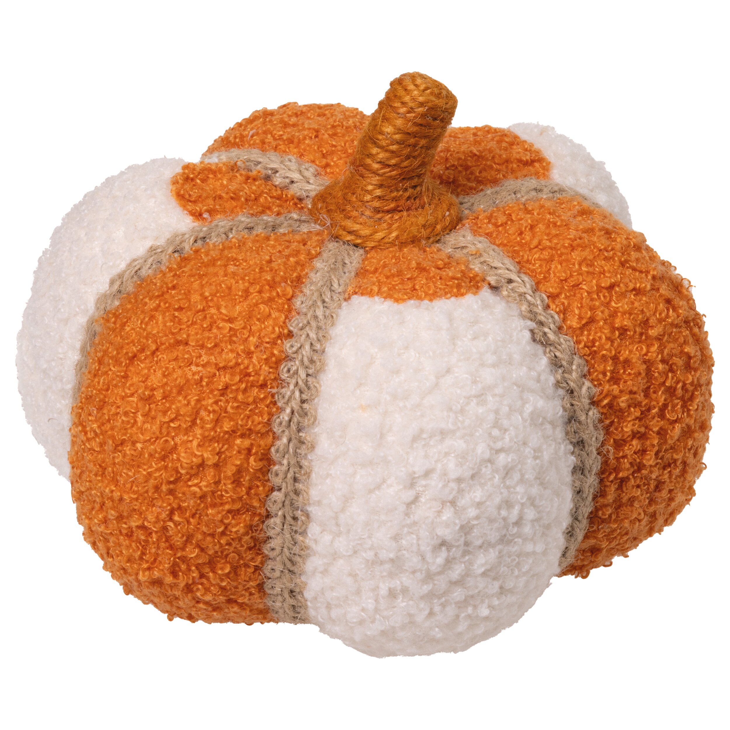 Herbstdeko Kürbis aus Bouclé – klein, orange/creme, handgefertigt