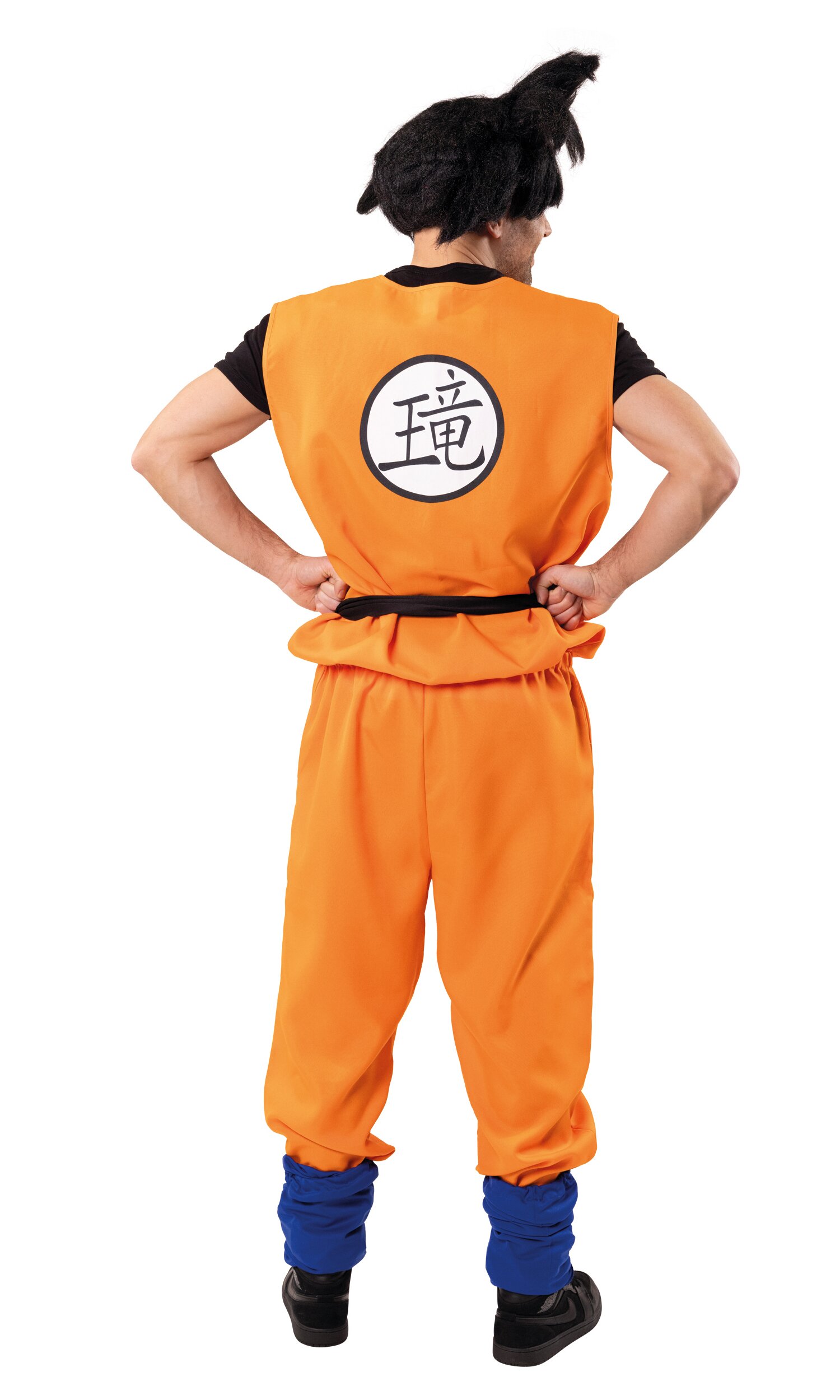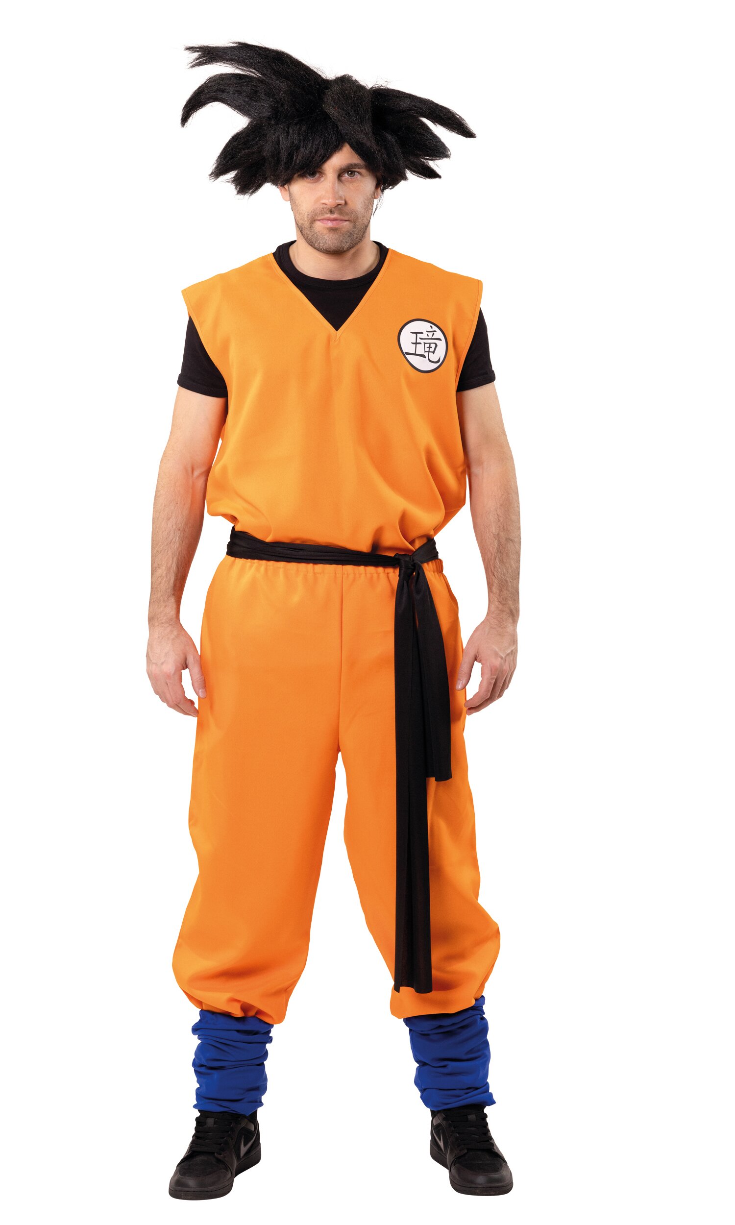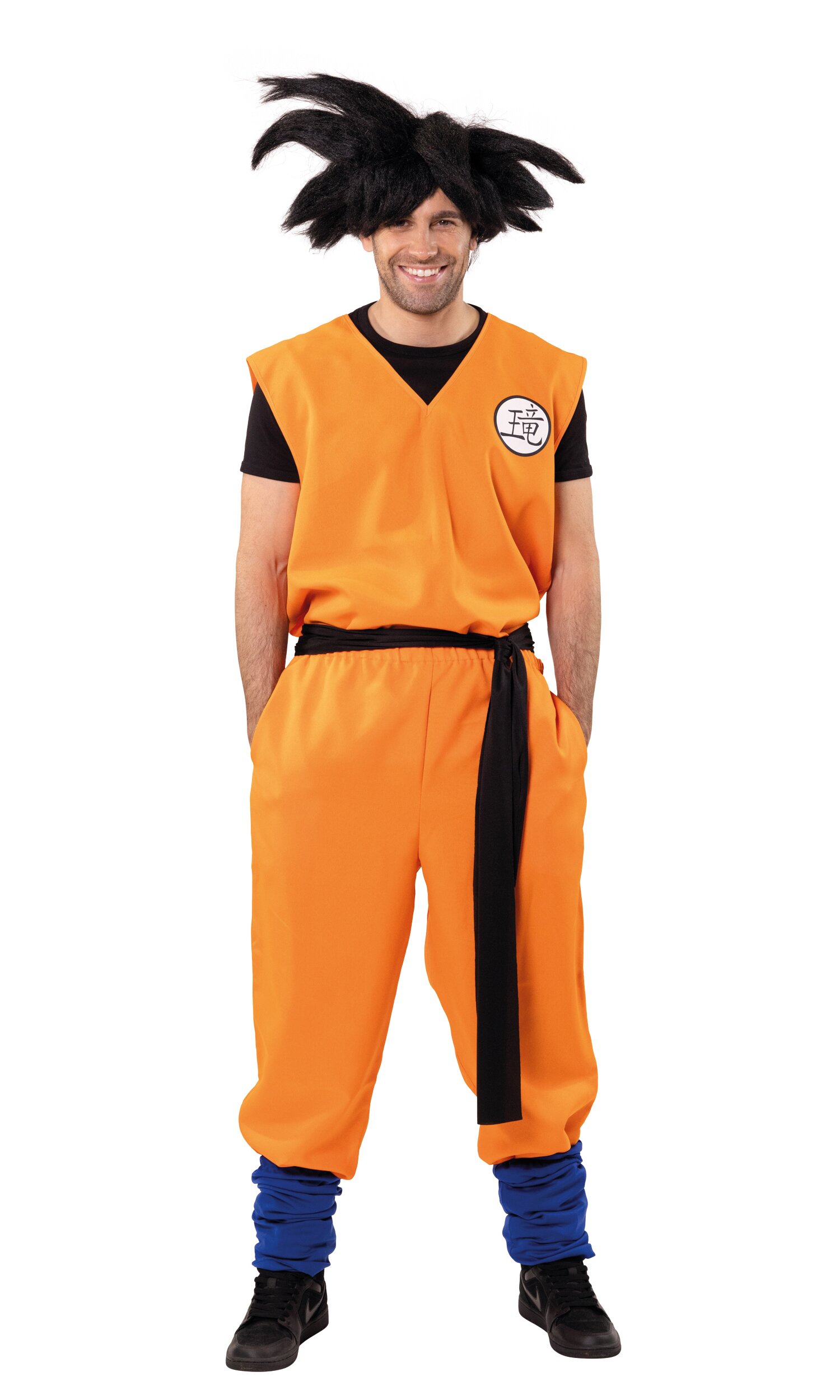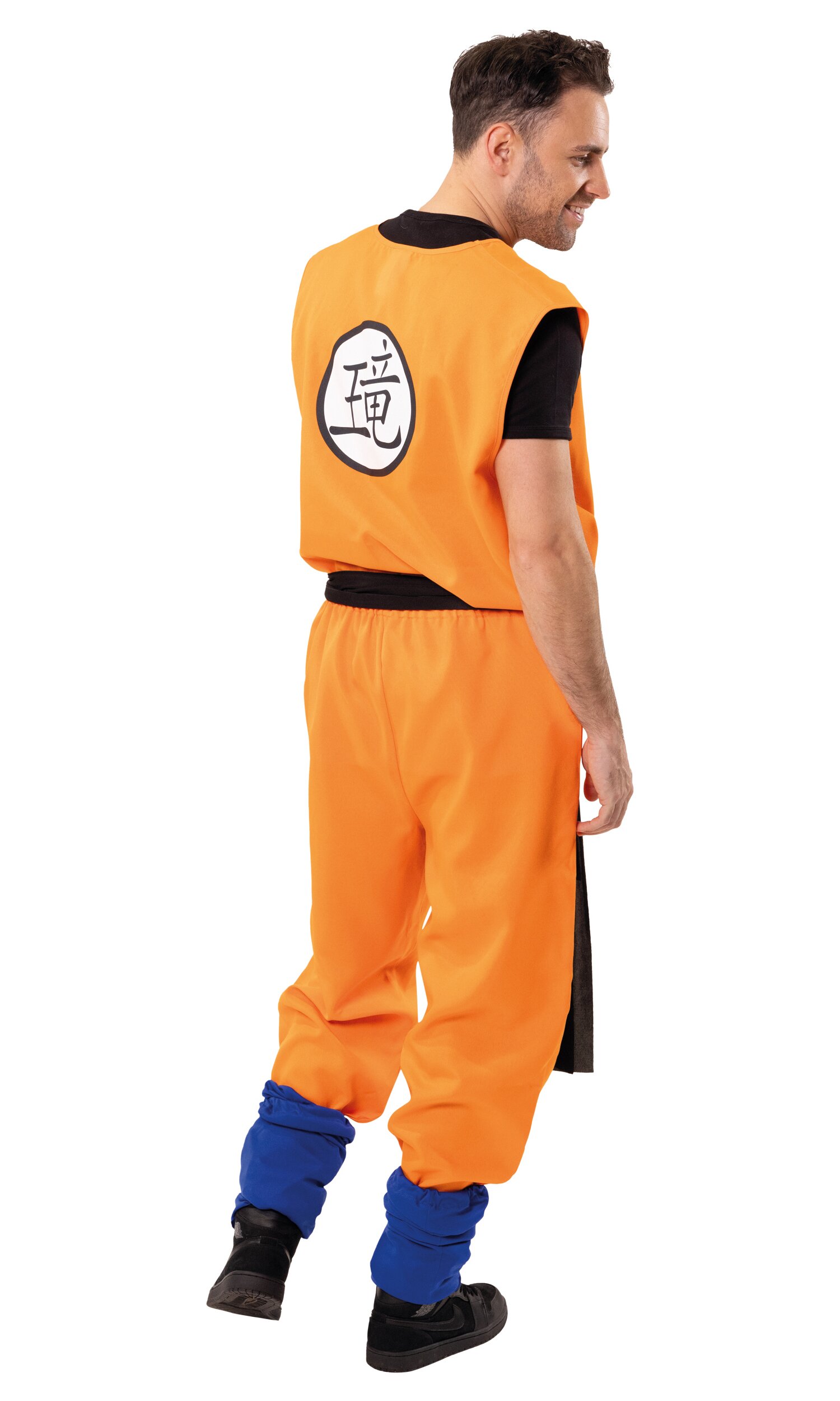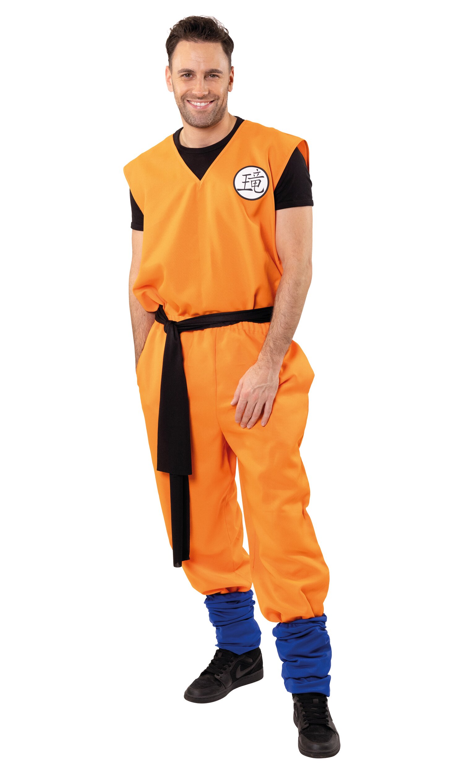 Das Set besteht aus Oberteil, Hose und einem langen schwarzen Gürtel. Das Outfit kommt in einem kräftigen Orange und wird durch ein japanisches Schriftzeichen auf der linken Brust optisch abgerundet. Perfekt für dynamische Partyauftritte und actionreiche Mottopartys!