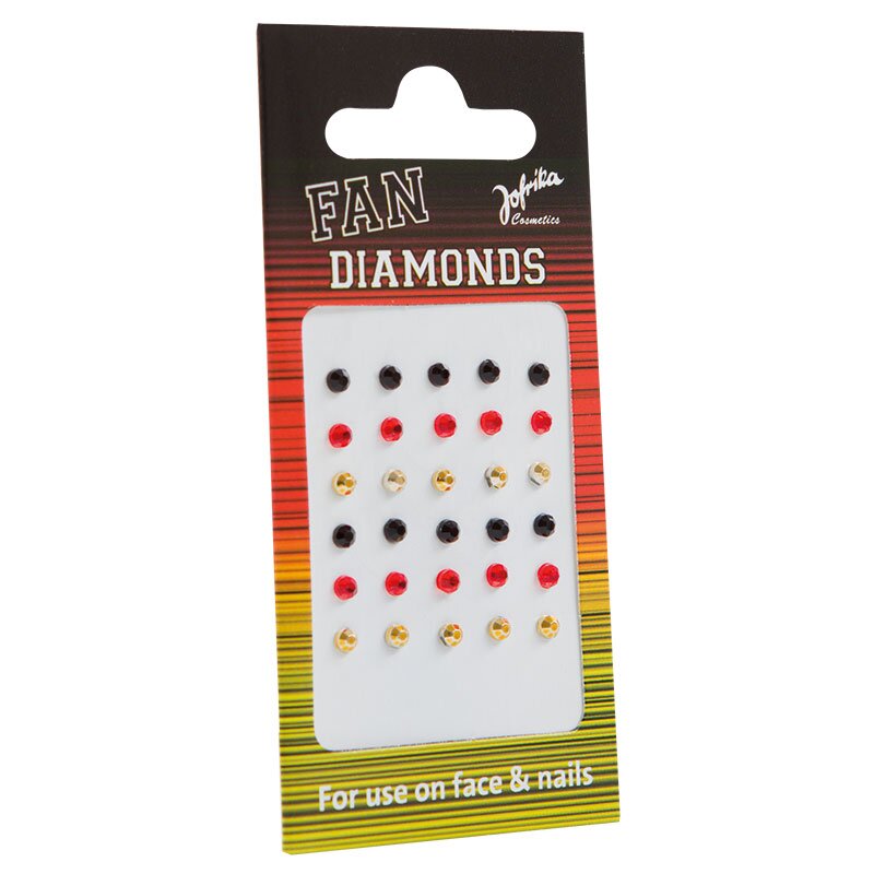 Kleine Brillanten in den Farben Schwarz, Rot und Gold. Die Aufkleber können sowohl auf der Haut als auch auf den Nägeln angebracht werden.