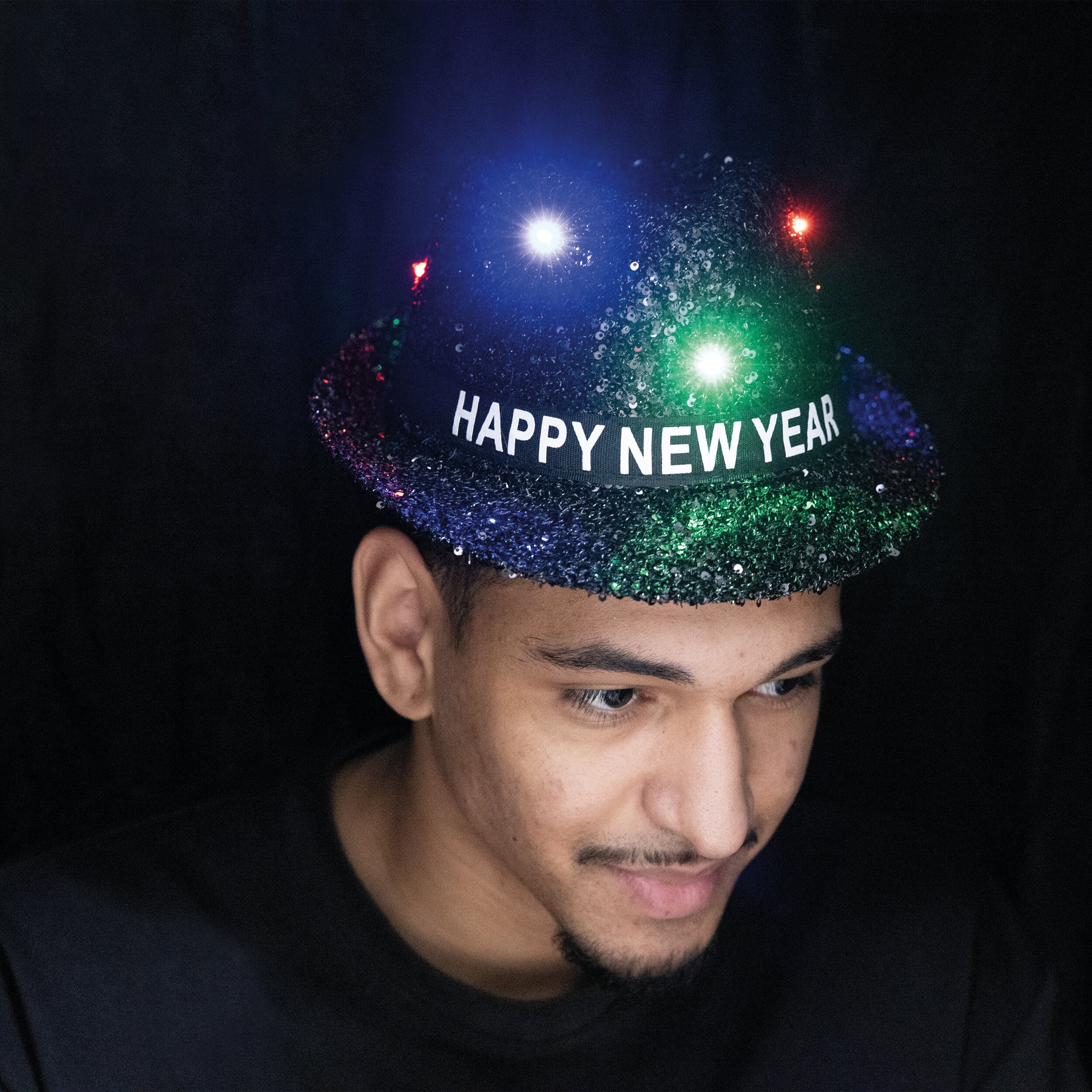 Produktinformationen "Fedora Paillettenhut Happy New Year LED schwarz"