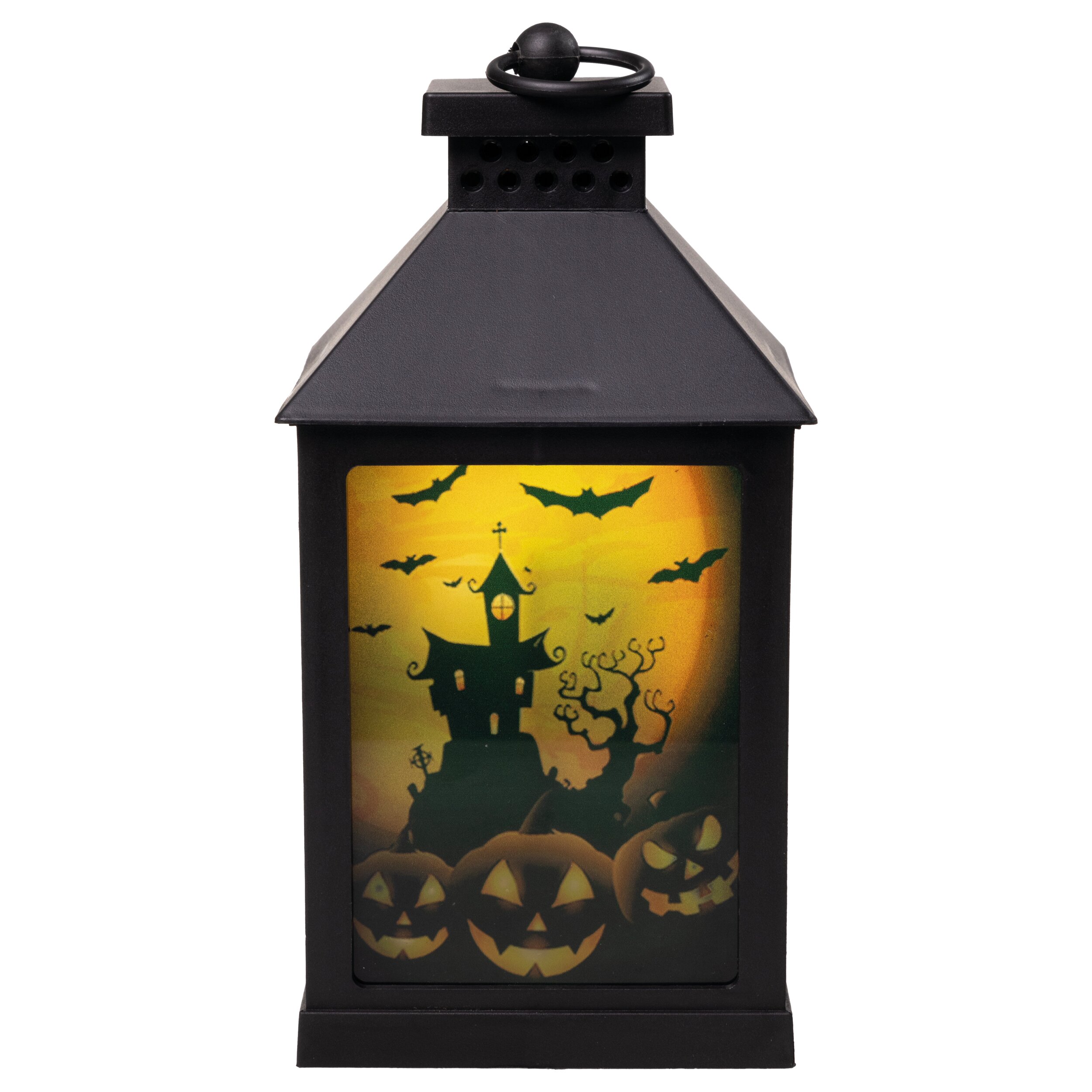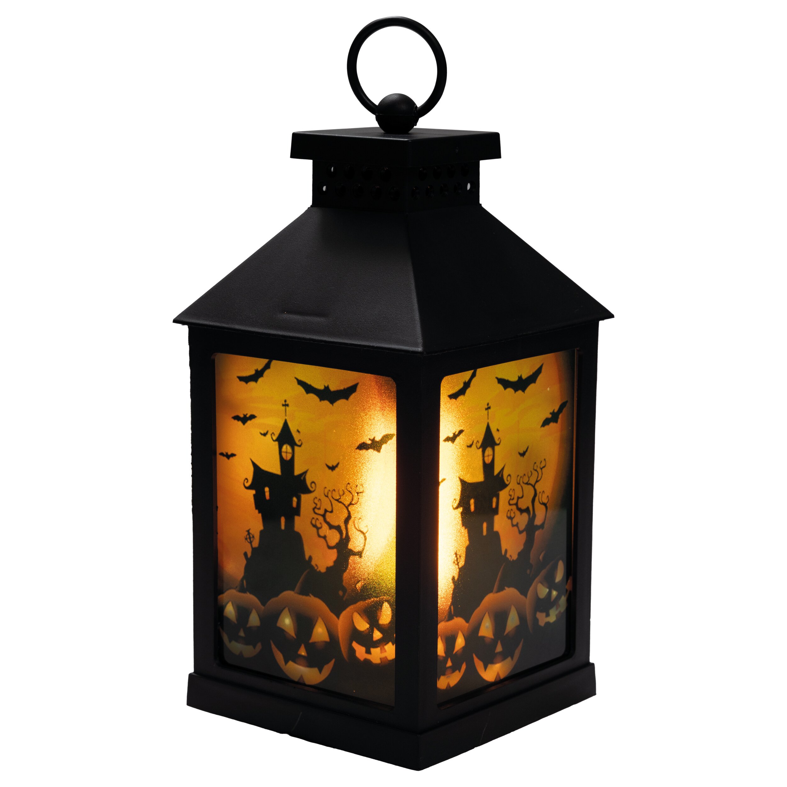Das warme LED-Licht lässt die Motive eindrucksvoll leuchten und schafft eine gemütlich-düstere Stimmung, ideal für Eingangsbereiche, Fensterbänke oder als Tischdekoration. Durch das klassische Laternen-Design mit praktischem Tragegriff lässt sich die Deko flexibel platzieren oder auch aufhängen.