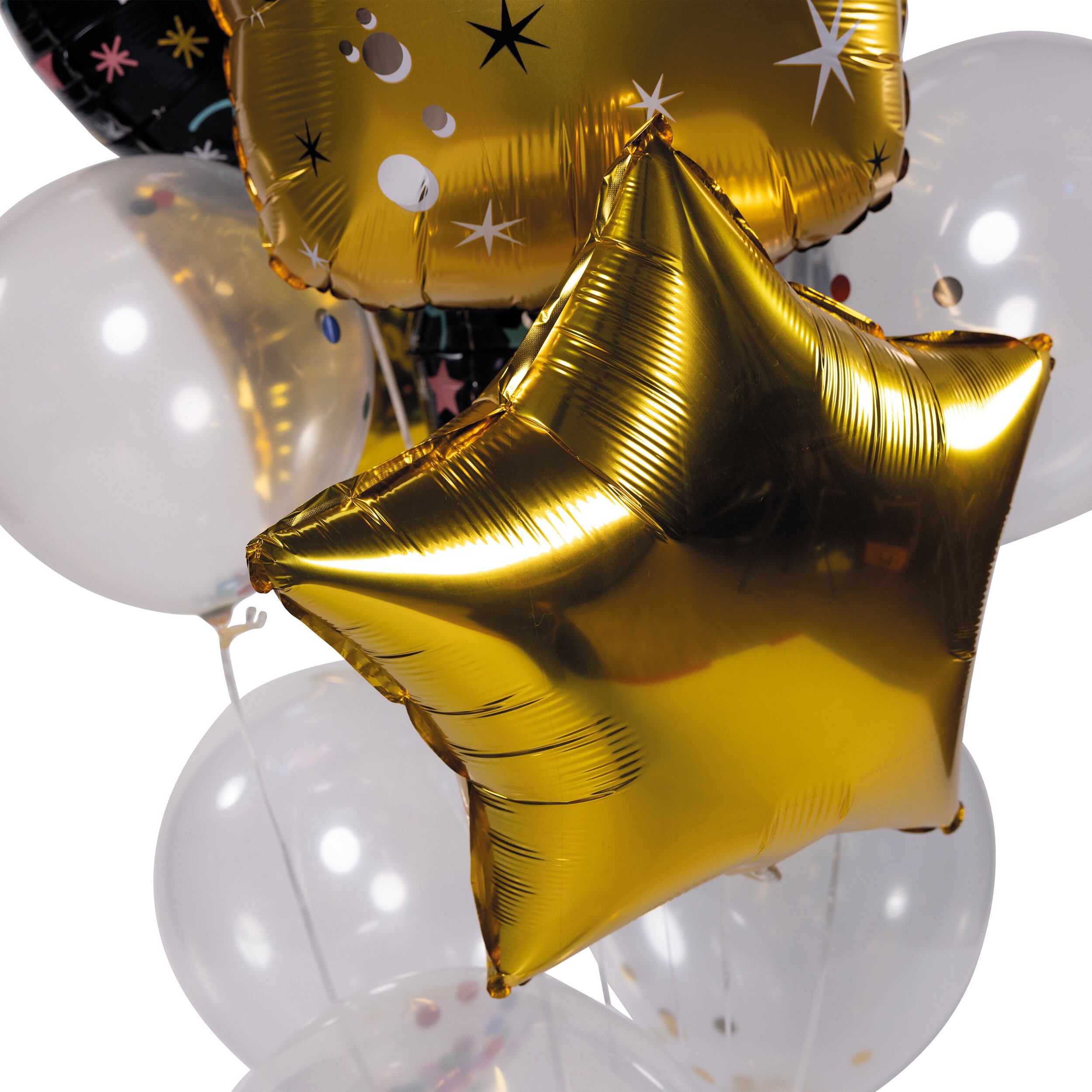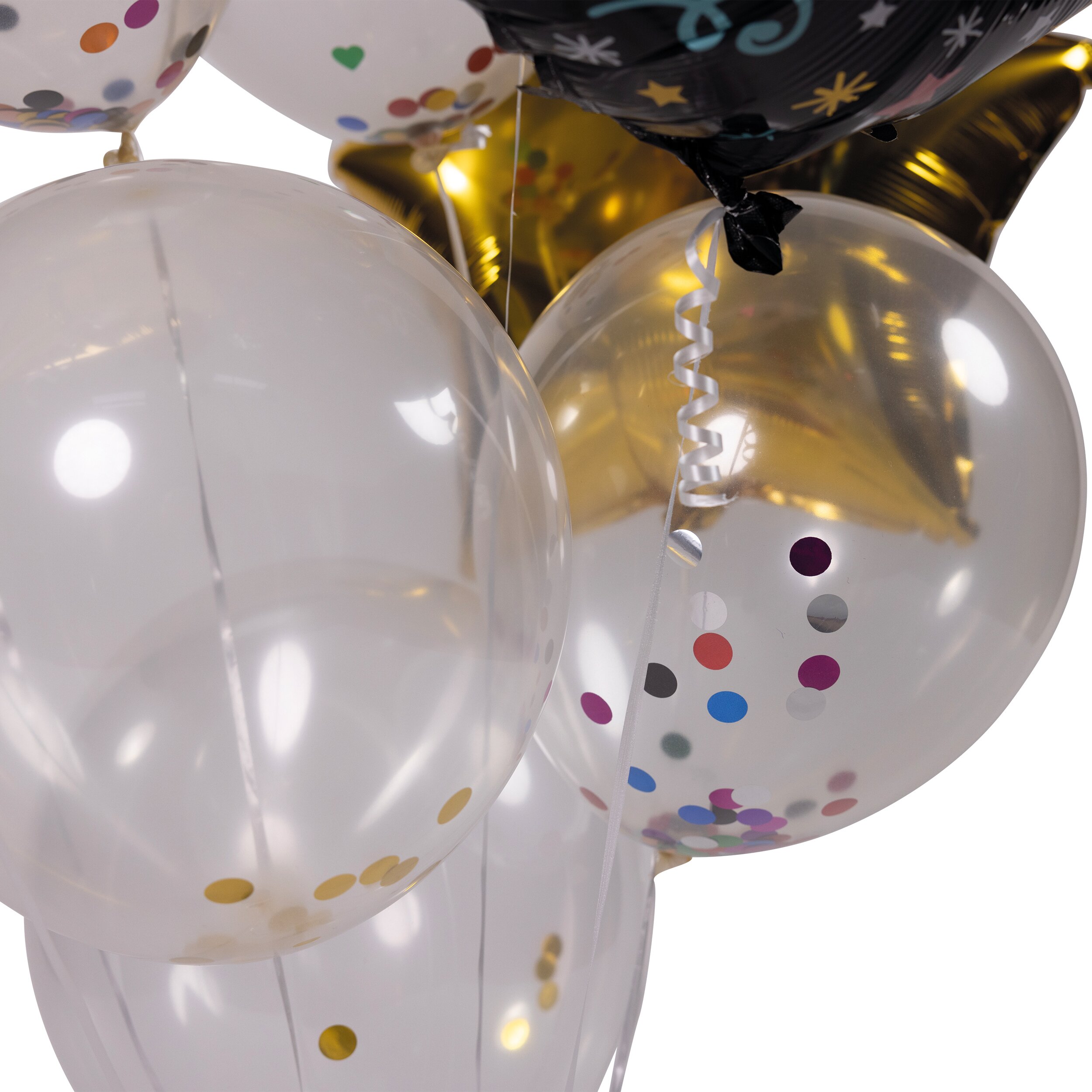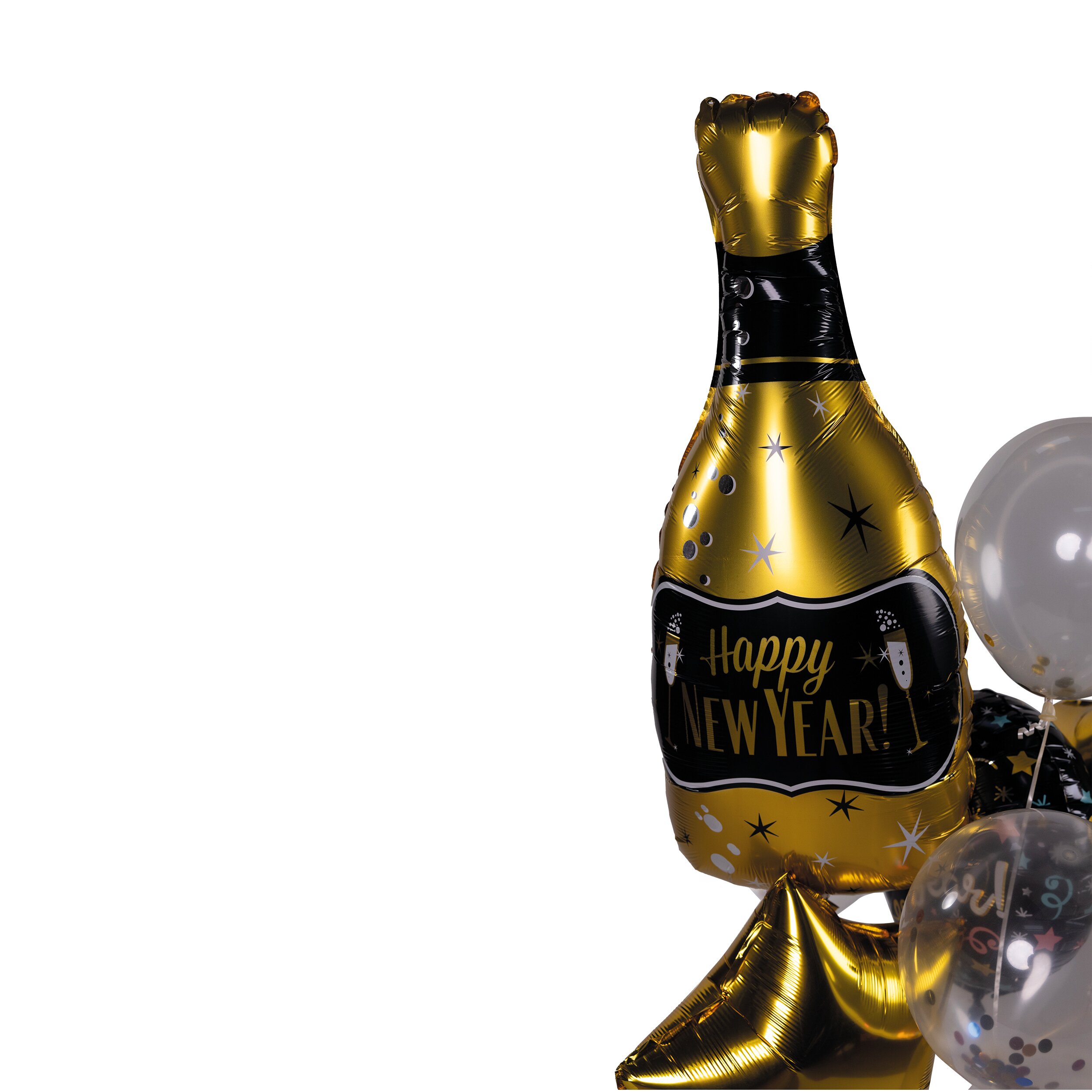 Aufblashilfe, Band4 Latex Ballons inkl. Konfetti2 Ballons Sternförmig ca. 41 x 45 cm2 Ballon rund Ø ca. 45 cm1 Ballon Sektflasche ca. 90 x 45 cm