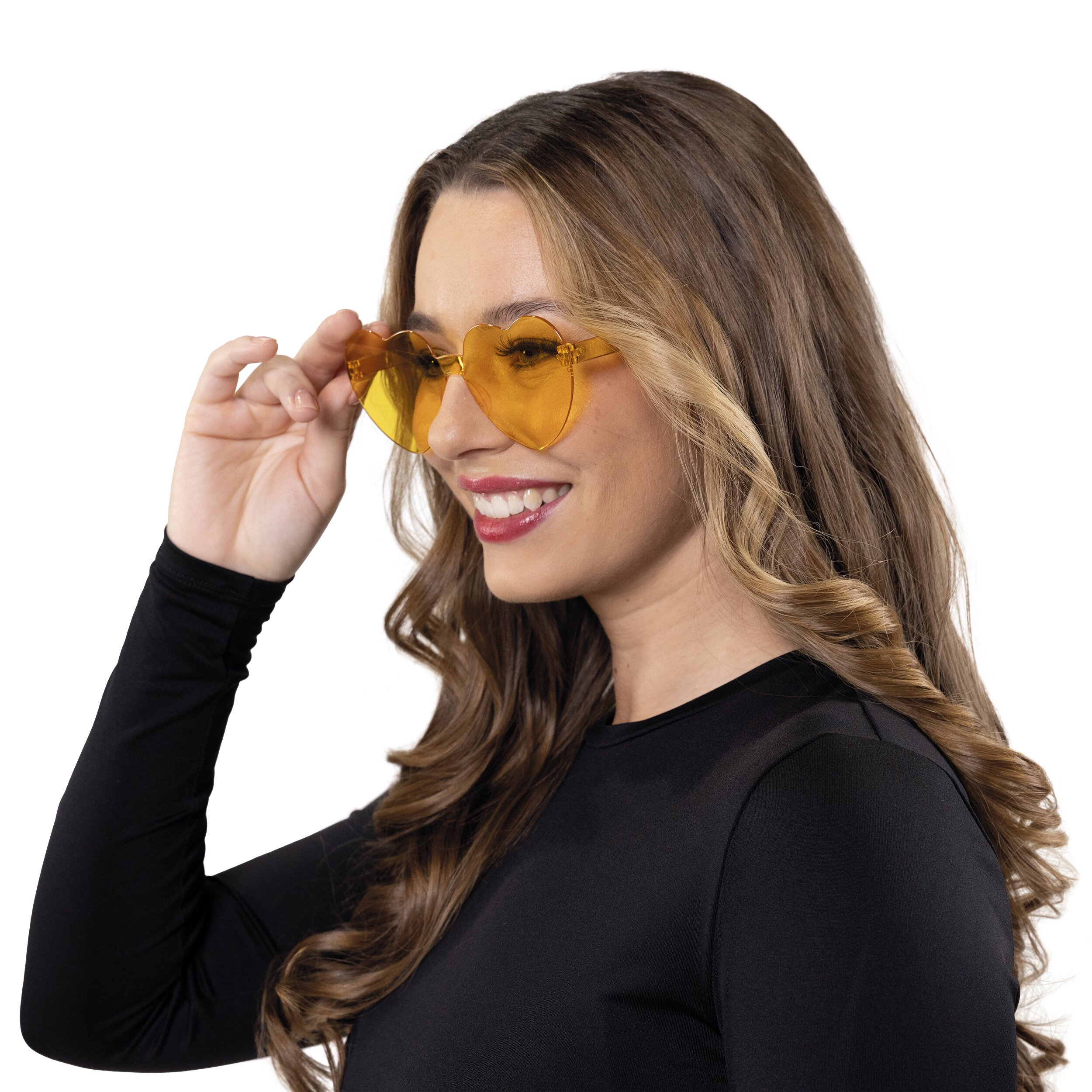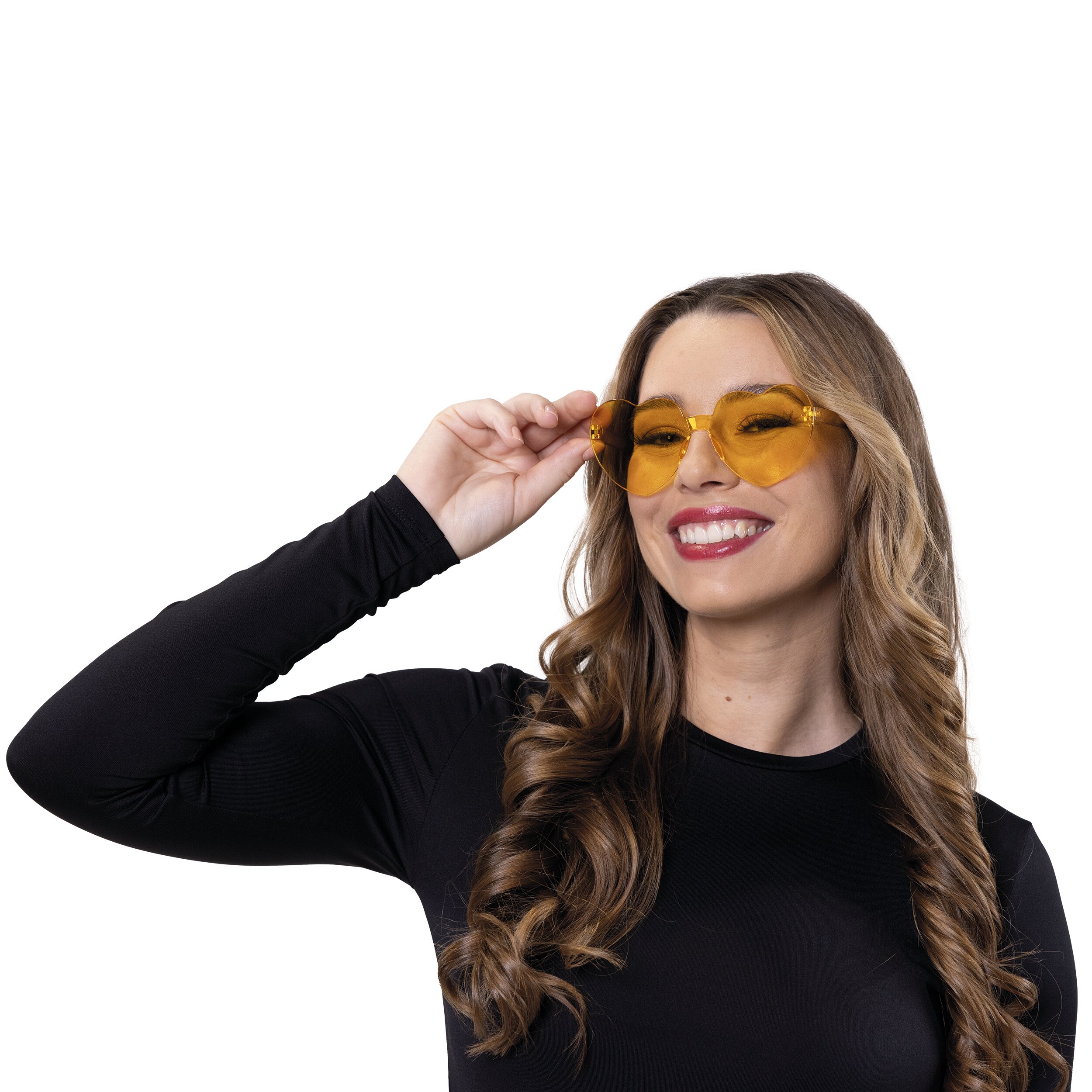 Orangefarbene Brille in Herzchen-Form - für den richtigen Durchblick an Halloween, für Junggesell*innenabschiede und Fantasie-Kostüme bzw. als lustiges Accessoire.