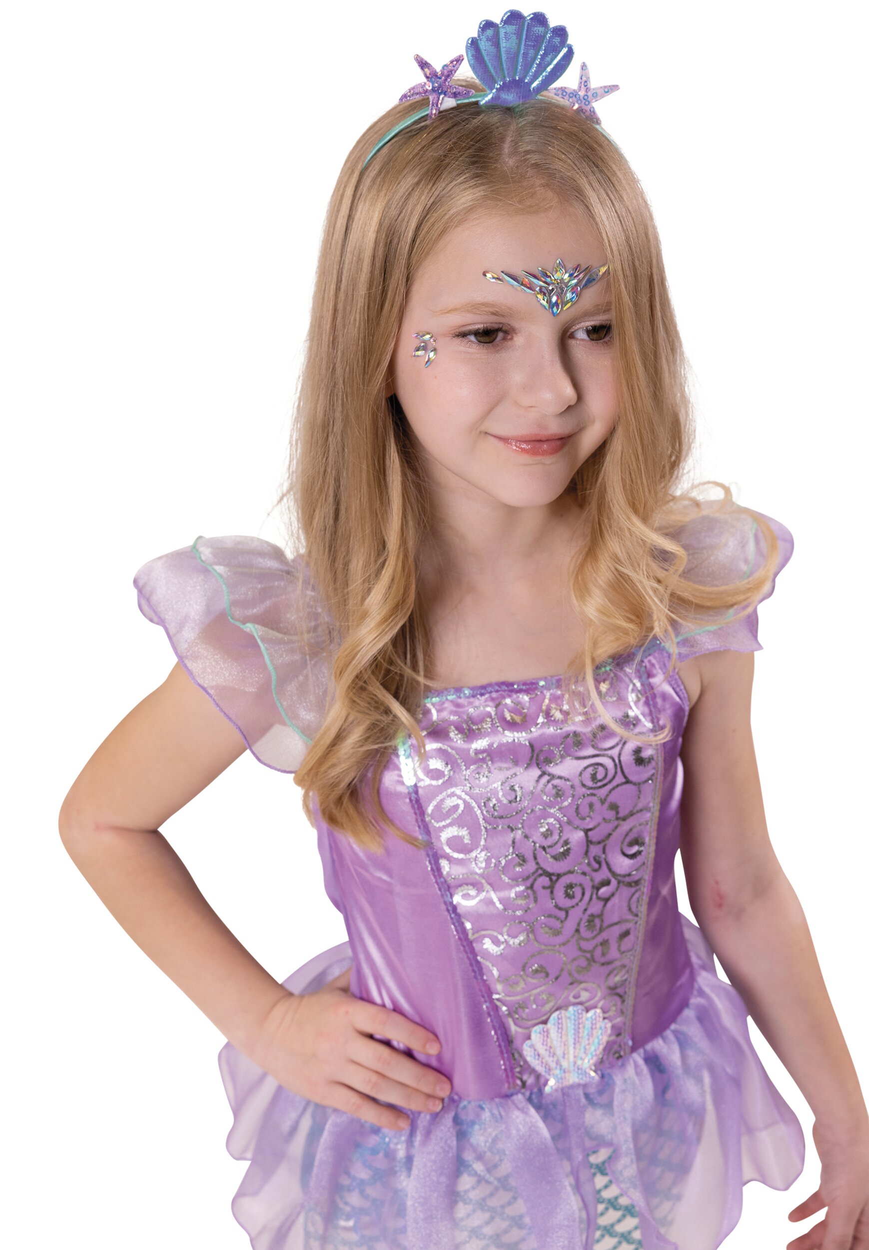 Dank des angenehmen Materials bietet das Meerjungfrau Kinderkostüm einen guten Tragekomfort beim Spielen und Feiern. Der passende Haarreif rundet das Outfit ab und macht die Verwandlung zur kleinen Meerjungfrau perfekt.