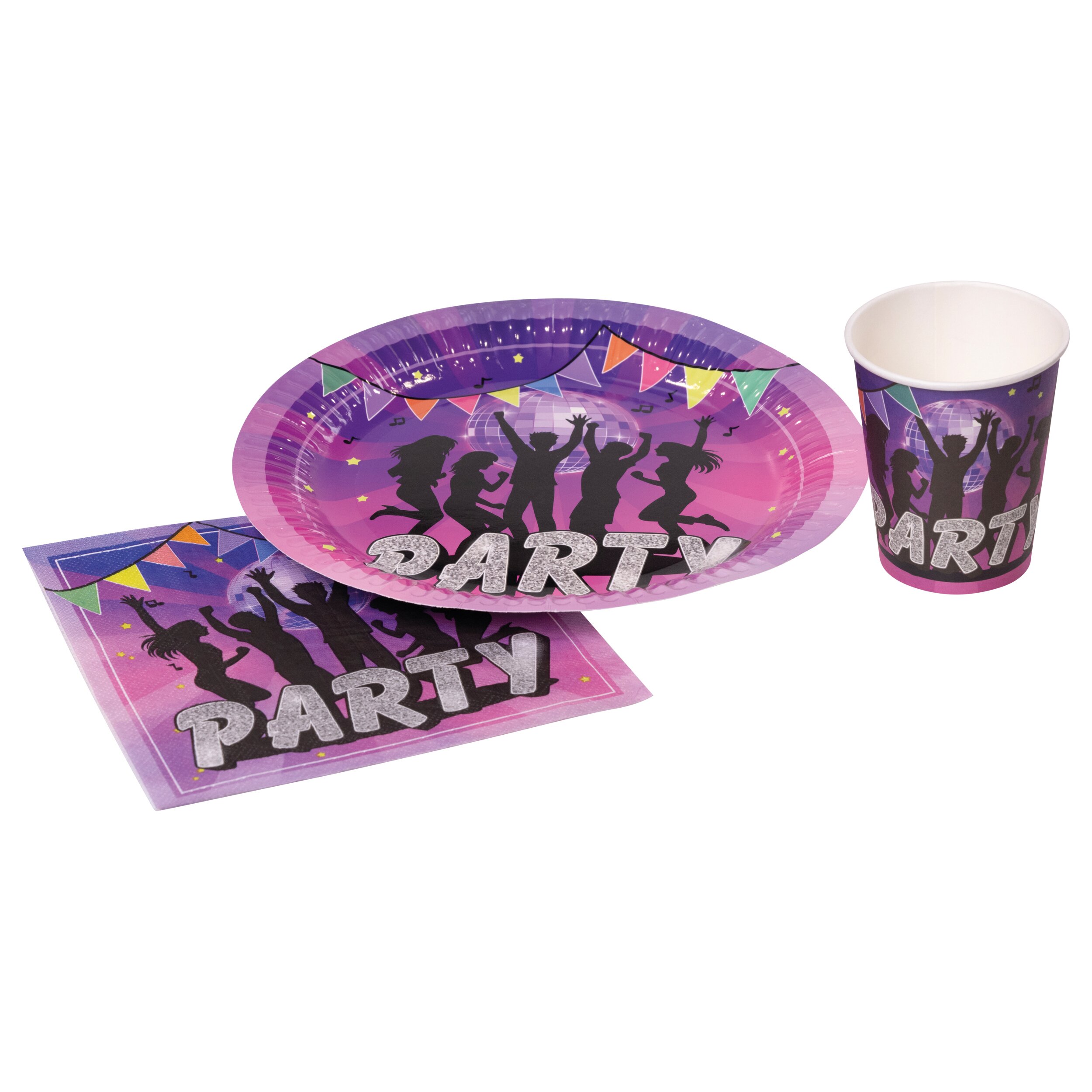 Mit diesen farbenfrohen Pappbechern im Party-Design wird jede Feier zum echten Highlight. Das lebendige Motiv mit tanzenden Silhouetten, Disco-Kugel und bunten Wimpeln sorgt sofort für gute Stimmung und passt perfekt zu Geburtstagsfeiern, Kinderpartys, Mottopartys oder anderen fröhlichen Anlässen.