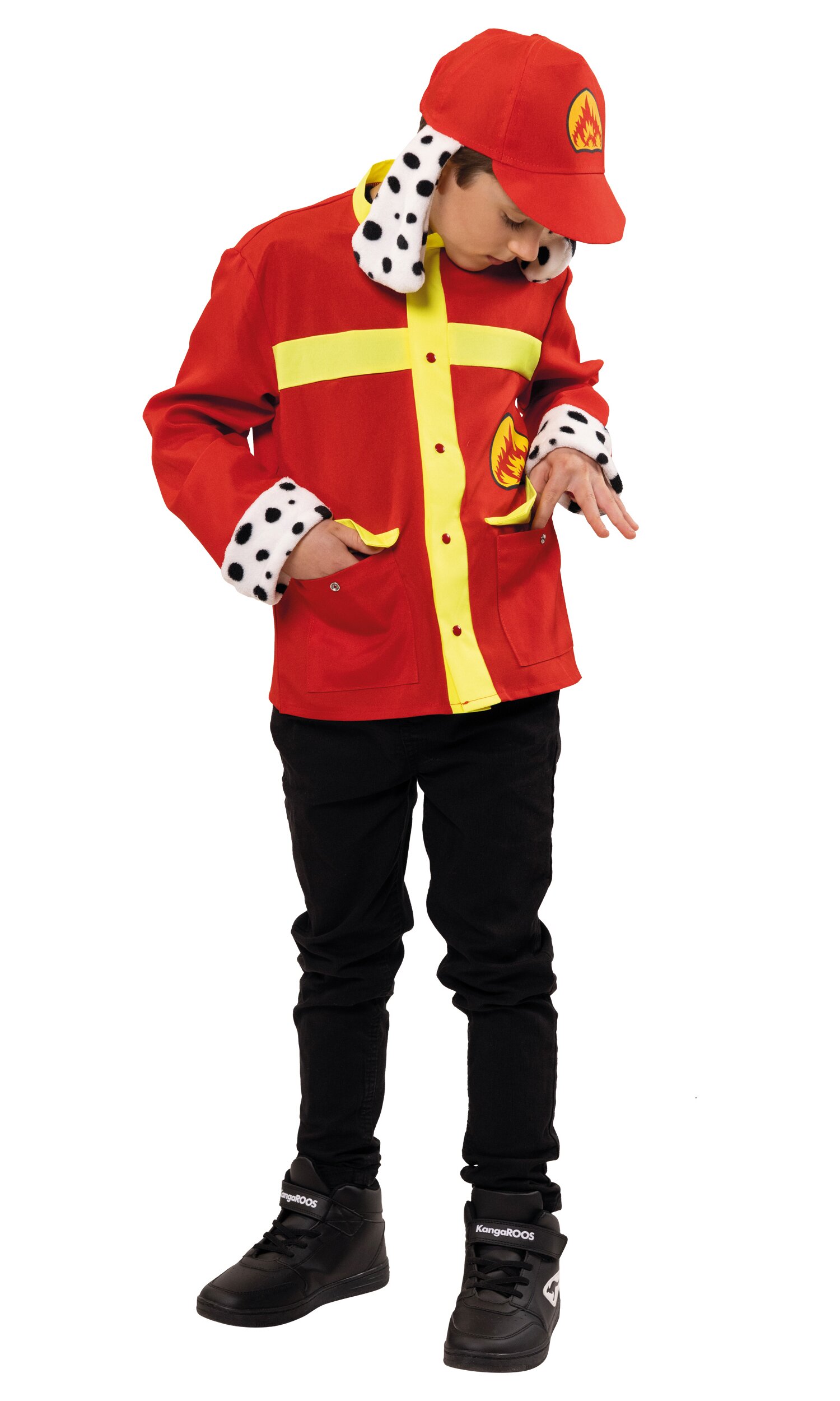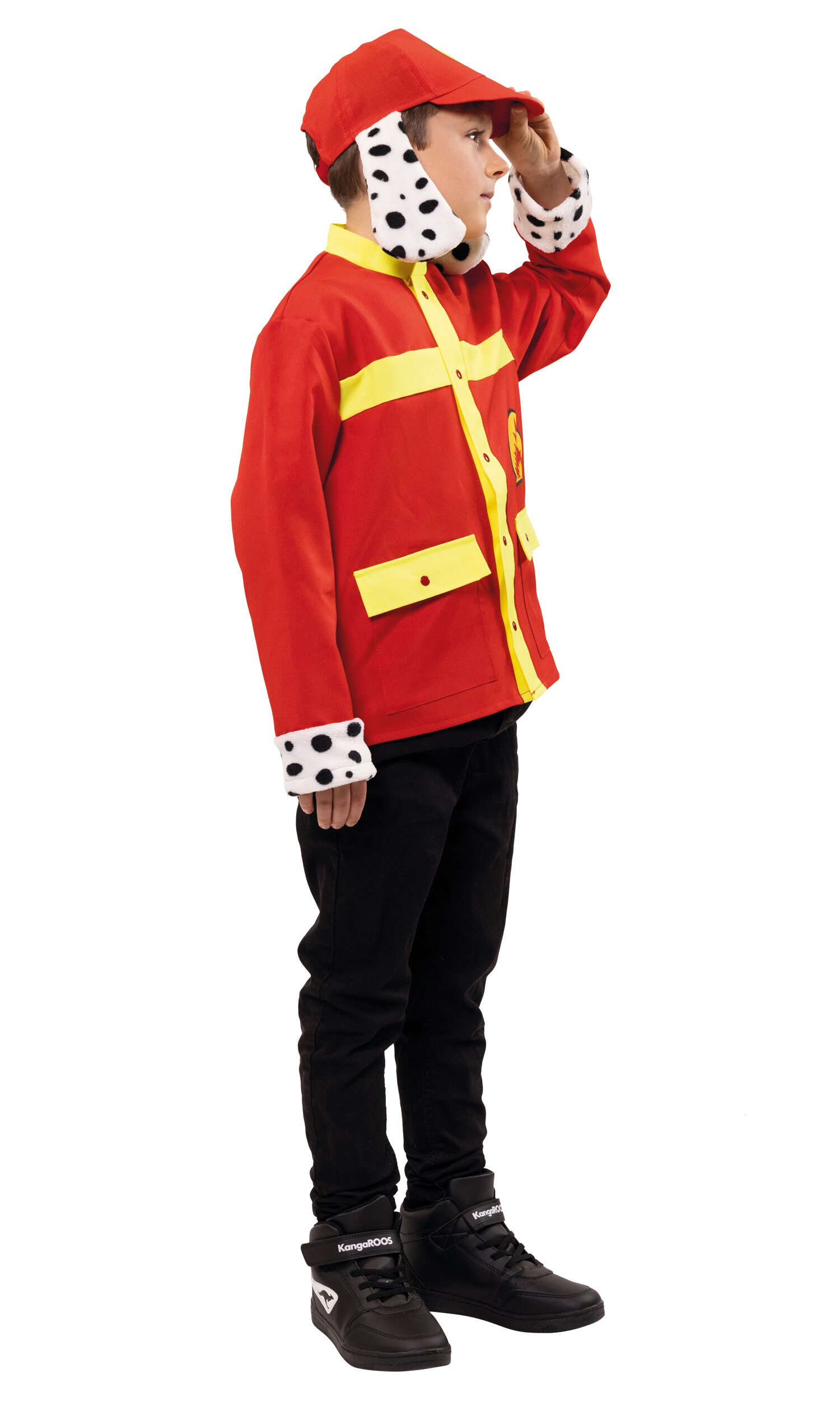 Zweiteiliges Set für kleine Retter auf 4 Pfoten! Blaue Jacke mit braunem Fell an den Ärmelbündchen, zwei aufgesetzten Taschen vorn und neongelben Einsätzen. Die Jacke wird mit 5 roten Druckknöpfen geschlossen und ist mit einem gedruckten Sherrif-Stern verziert. Hinten ist sie uni blau. Die im Lieferumfang enthaltene blaue Schirmmütze hat ebenfalls einen aufgredruckten Sherrif-Stern vorn sowie befestigte Ohren aus braunem Fell.