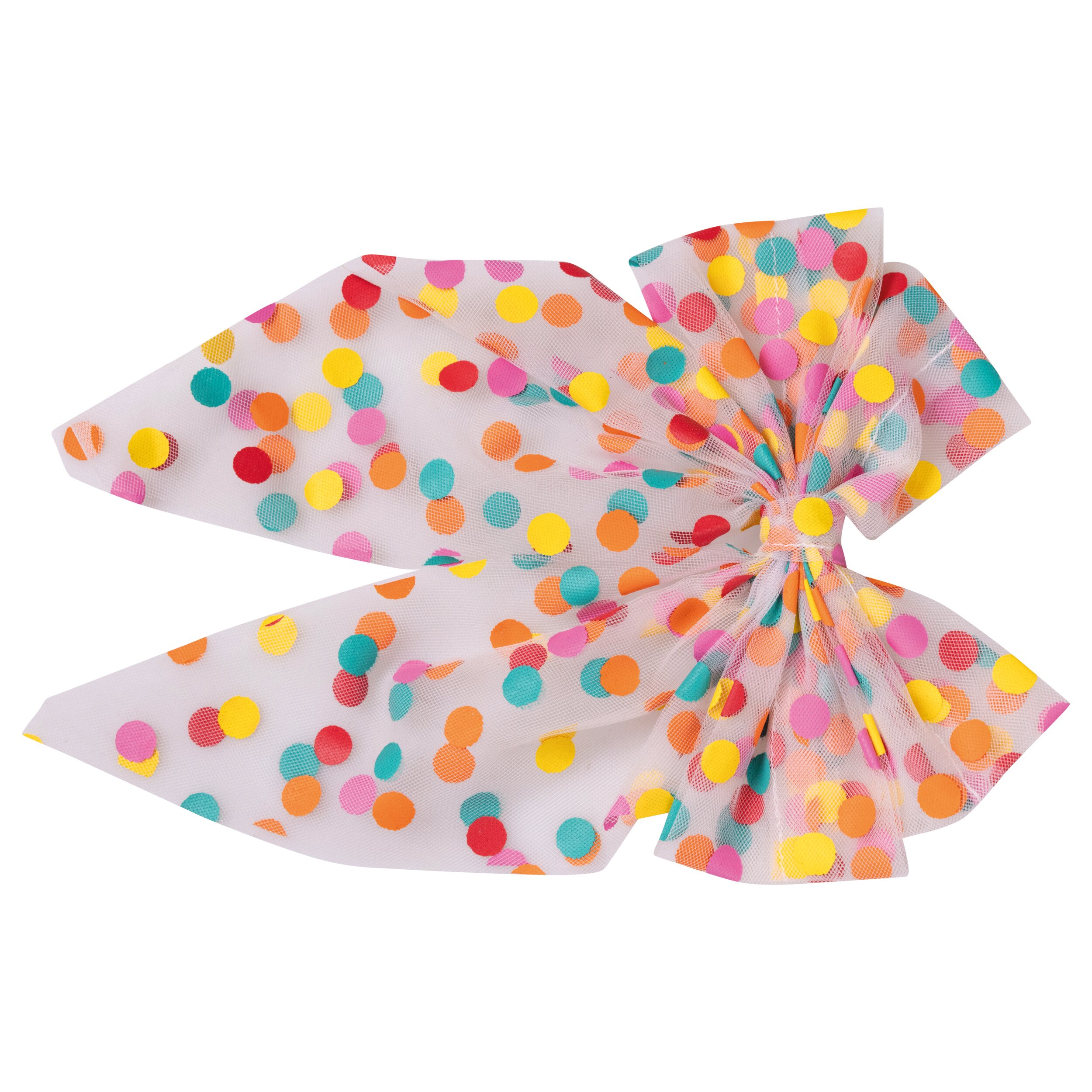 Diese fröhliche Schleife in Konfettioptik ist das perfekte Accessoire für farbenfrohe Kostüme und Party-Outfits. Das leicht transparente Material mit bunten Konfetti-Punkten sorgt für einen verspielten Look und macht die Schleife zu einem echten Hingucker auf Karneval, Fasching, Mottopartys oder Geburtstagsfeiern.