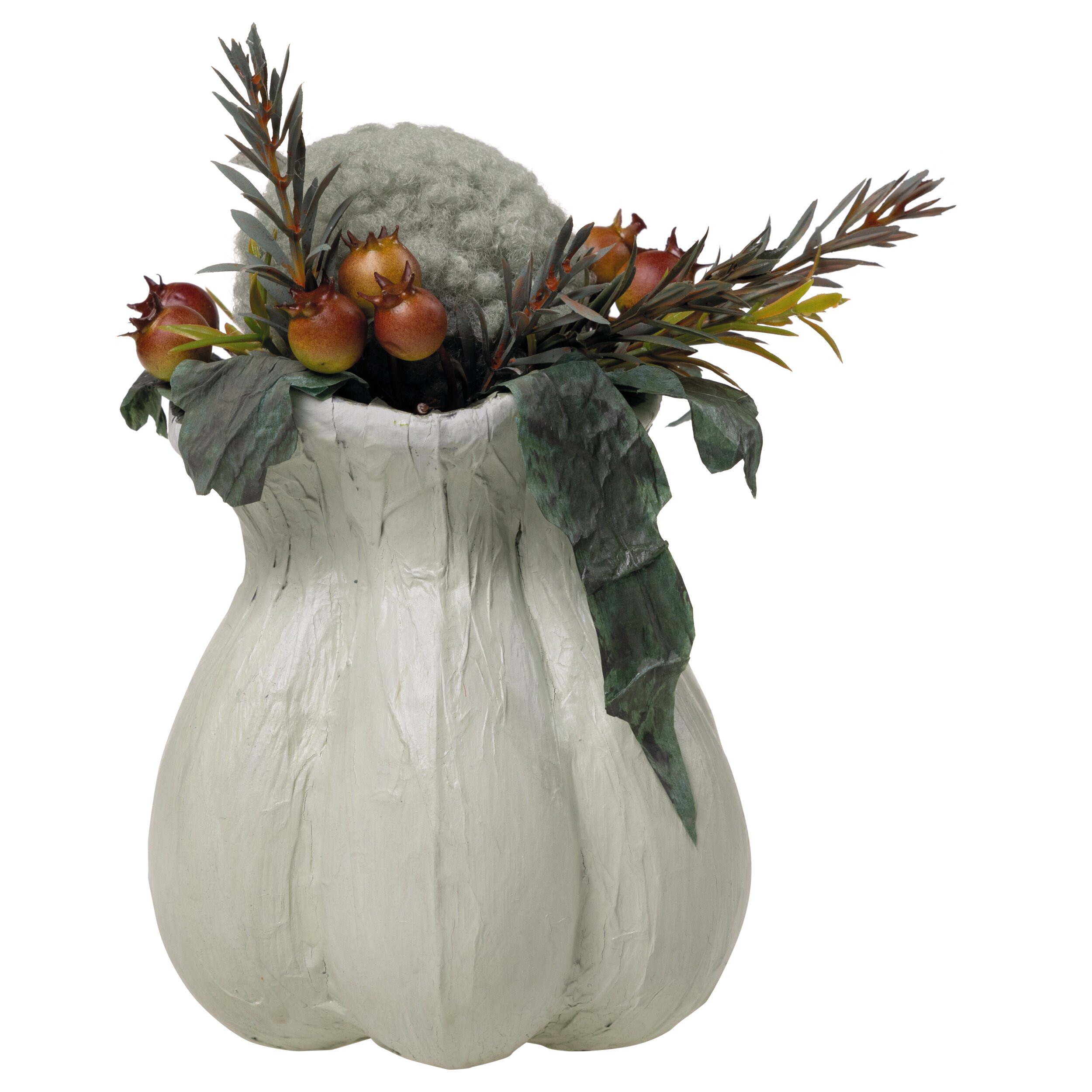 Die Figur wurde in Handarbeit gefertigt und überzeugt durch viele sorgfältig ausgearbeitete Details. Die Kombination aus herbstlicher Vase, natürlicher Dekoration und der kleinen Eule macht dieses Arrangement zu einer charmanten Herbstdekoration für Tisch, Fensterbank, Regal oder Kommode.