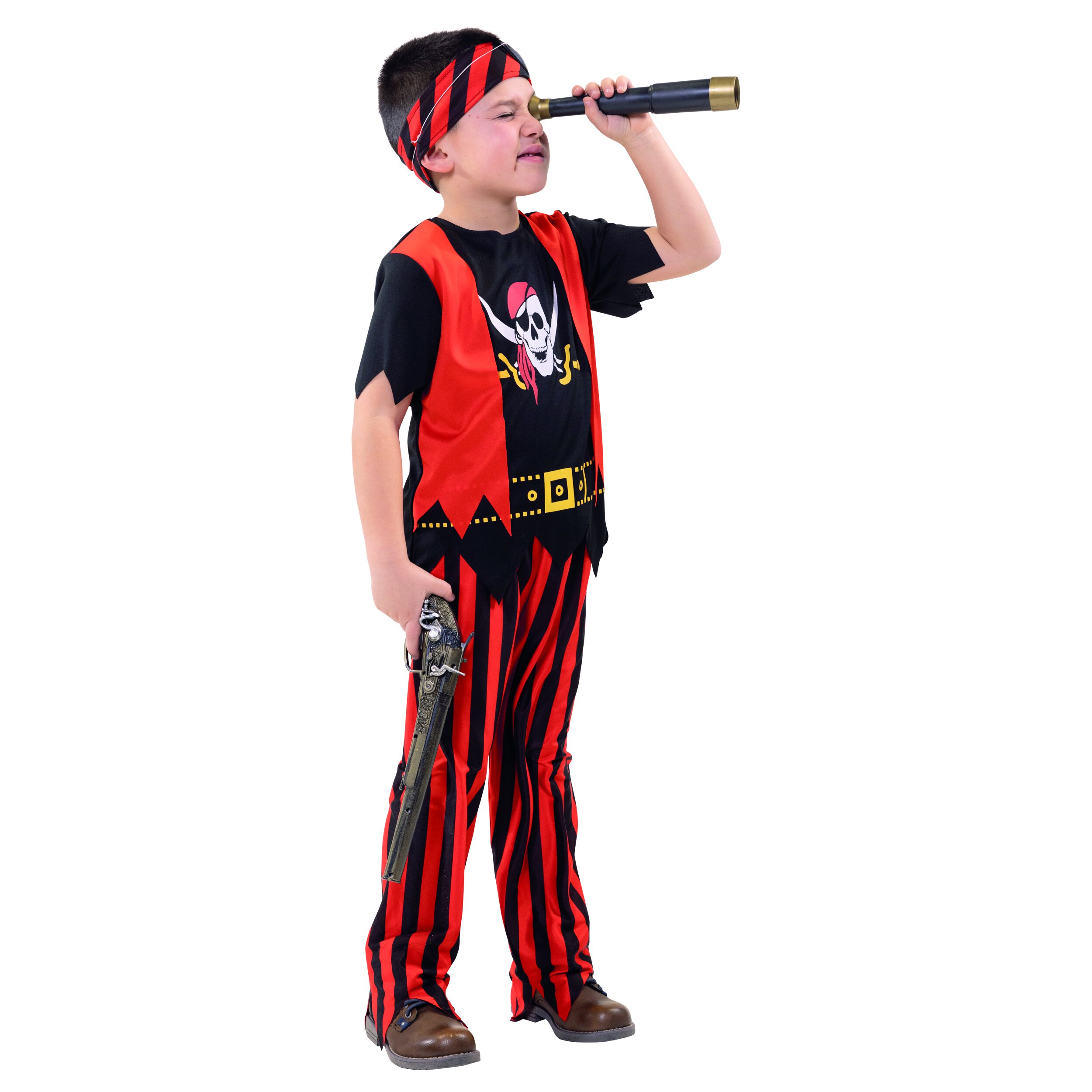 The 3-piece pirate set for children consists of a pistol, eye patch and telescope.