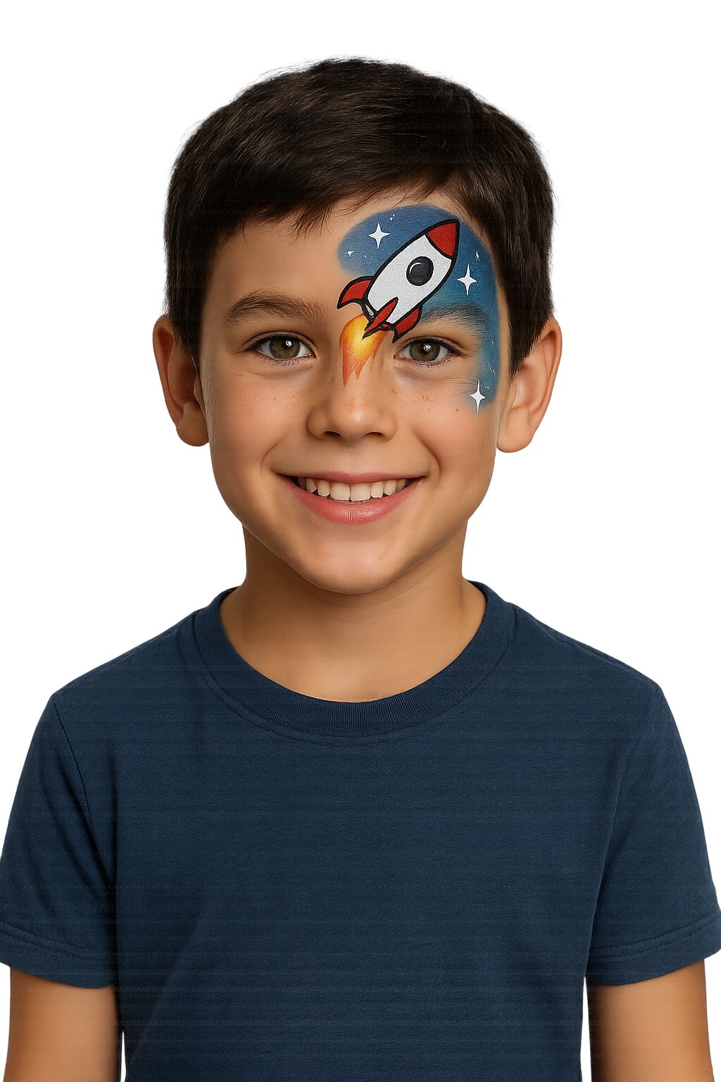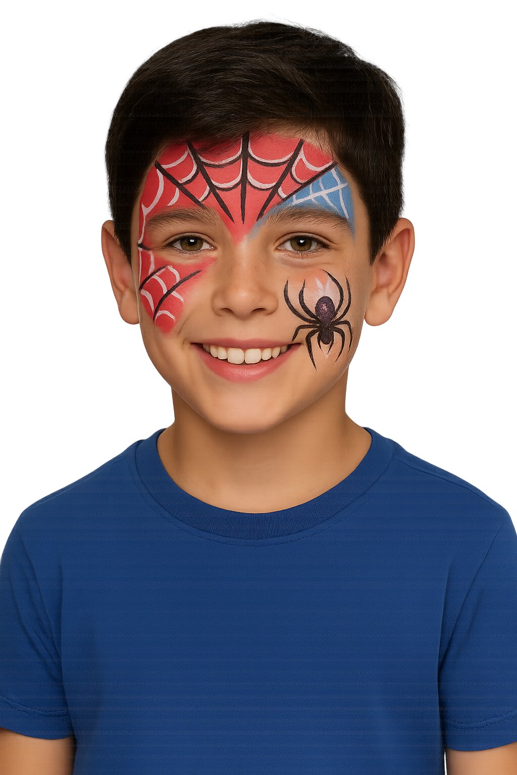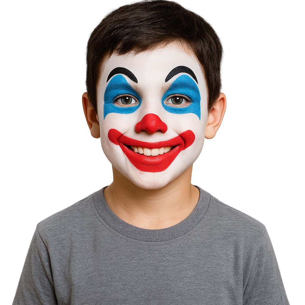 The Aqua-makeup-set contains four colors (black, blau, red and white) for a clown style. The makeup has to be mixed with water and is applied with the included applicator. After it has dried it will be smudge-proofed and it is non-greasy. Easy to remove with water and soap.