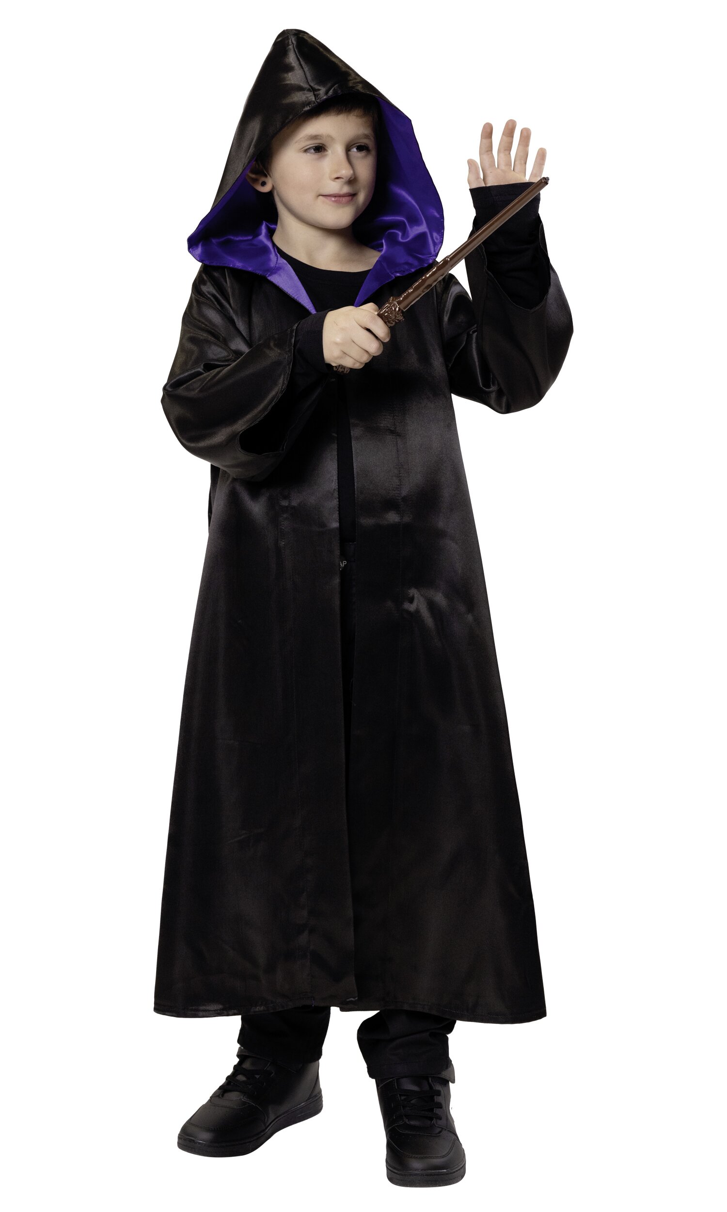 The wizard cloak for kids is a classic costume piece, perfect for magical dress-up occasions. Its simple yet striking design creates an authentic wizard look.