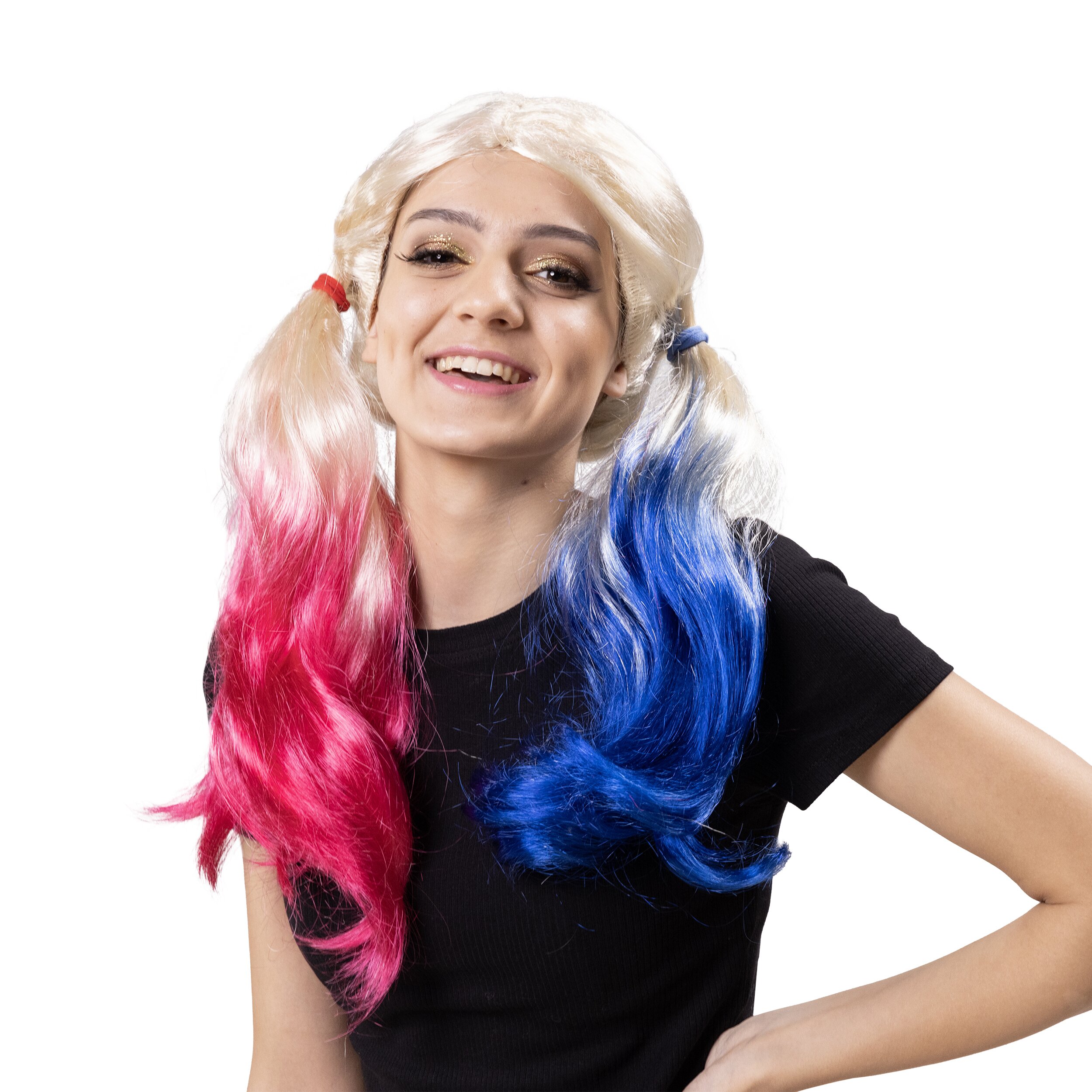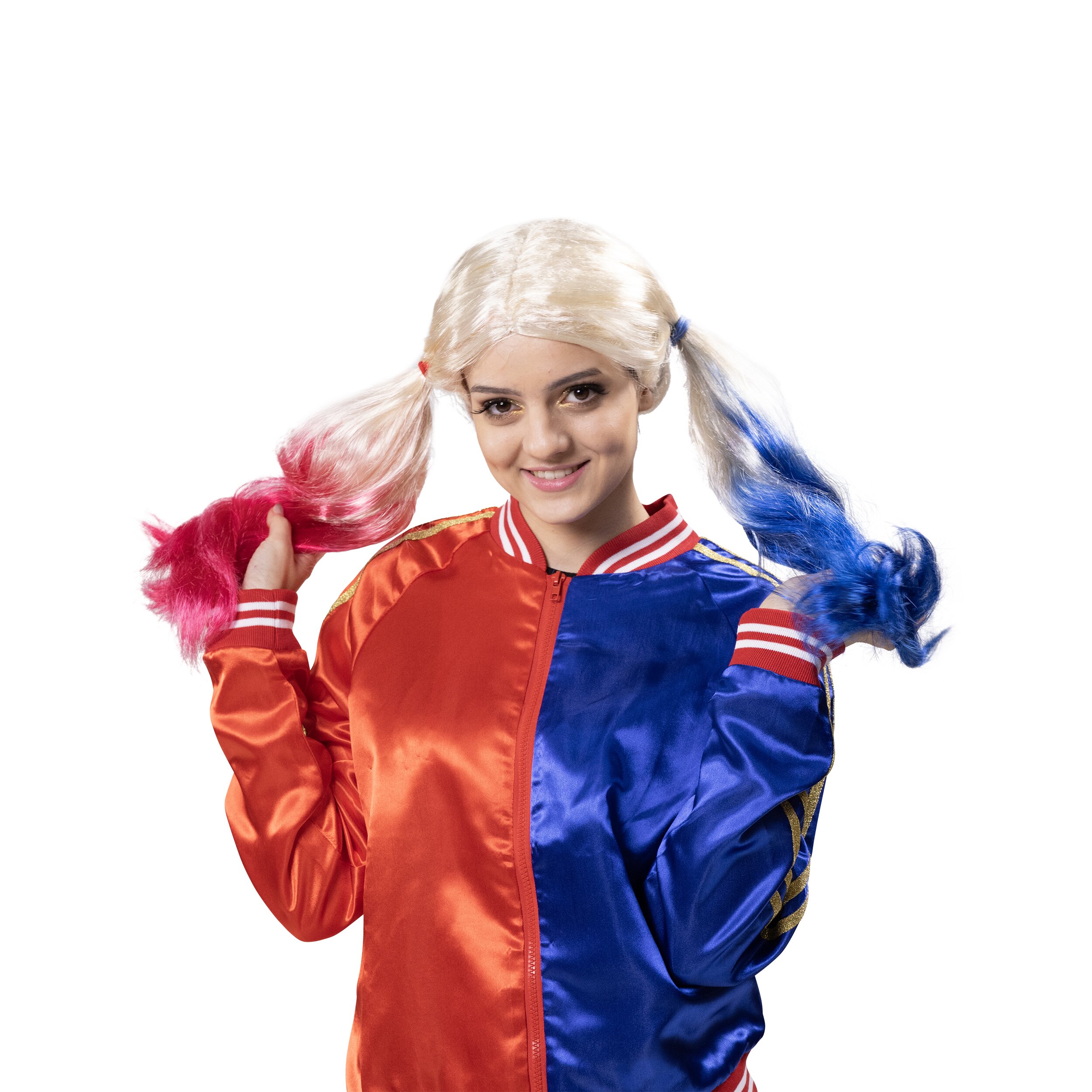 Highly intelligent, equipped with superpowers, crazy as hell and unmistakably with differently colored pigtails... Here's the wig to match the outfit:
