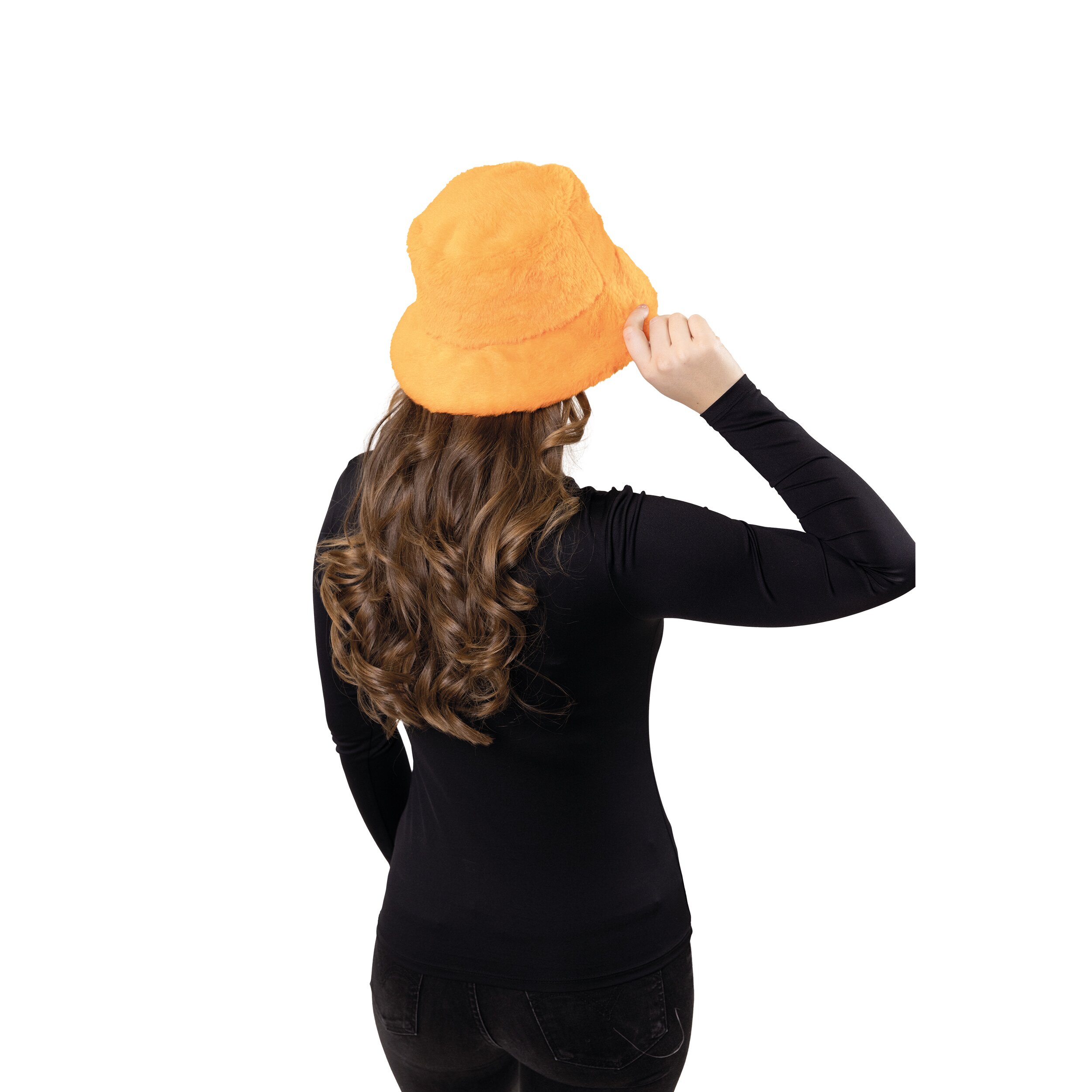 This plush fisherman’s hat in bright orange is the perfect accessory for eye-catching festival and party looks. The classic bucket hat cut meets soft plush material, creating a modern, trendy style with high recognition value.